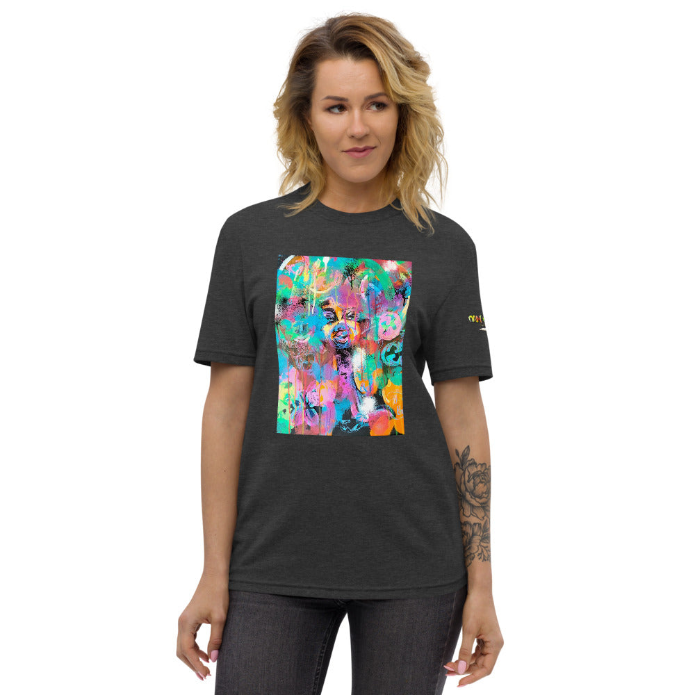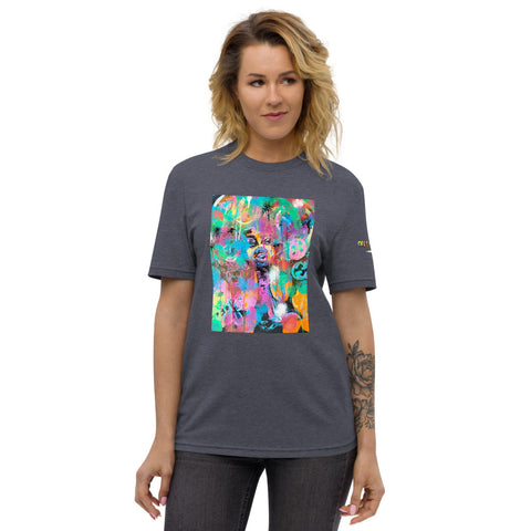 This t-shirt is made from recycled cotton scraps and upcycled polyester rPET, saving reusable textiles and plastic bottles from ending up in landfills. Buy this recycled t-shirt, and join the ethical fashion movement!